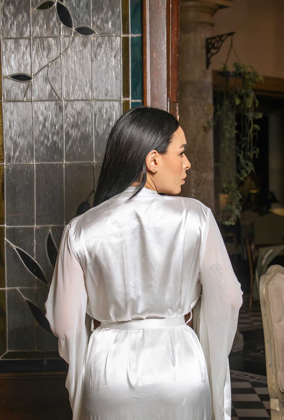 Esta bata amparo de novia es la opción perfecta para lucir radiante en tu gran día. Confeccionada con materiales de alta calidad, te brinda comodidad y elegancia durante toda la preparación. Además, su diseño exclusivo aporta un toque especial a tu look nupcial. ¡Disfruta de tu día con BATA AMPARO!